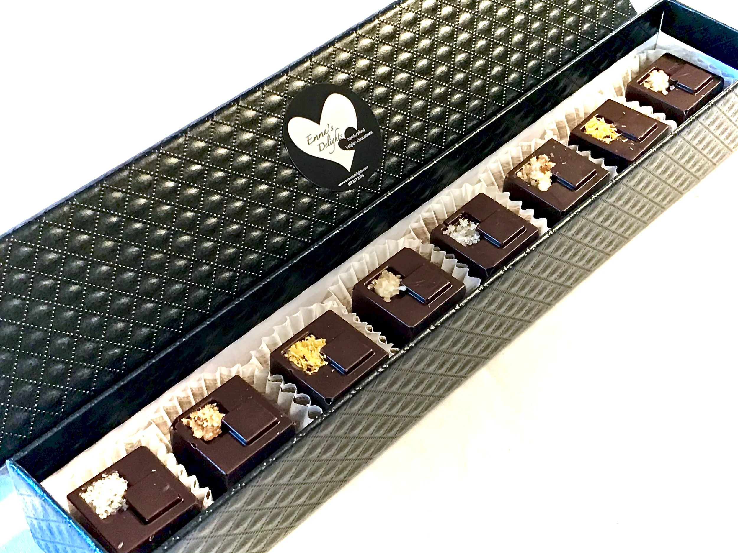 Select your favorites from our wide variety of Delights: choose any flavors of our handcrafted Belgian chocolates and/or any gourmet treats. We customize to your needs!